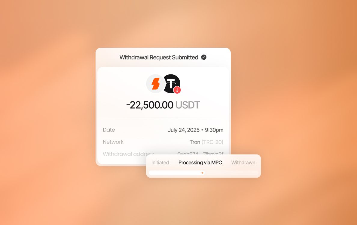 Secure deposits with advanced MPC-backed custody, built on trusted, industry-leading infrastructure